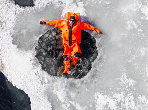 - Купание в сухих костюмах среди льдин Белого моря