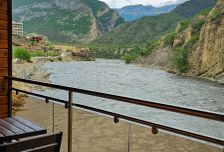 Утром собираем всех и Eдем в горы, в район села Карадах, в наш отель "Белые Журавли. Это новый отель, с современными номерами класса Премиум, со всеми удобствами. Расположен прямо на горной реке Айварское Койсу. На этой базе мы проведем 4 ночи и отсюда будем выезжать на прогулки по красотам высокогорья) "Белые Журавли" уже 4 года наше основное место проживания в горах и сейчас это объект, не имеющий аналогов в горном Дагестане. Проживание здесь - особое удовольствие! Первый вечер свободный - Огромная красивая территория отеля позволяет провести его с большим удовольствием!