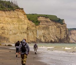 Если ваш вылет на Кунашир будет вечером, то с утра мы можем предложить вам на Сахалине дополнительную платную экскурсию на мыс Великан и мыс Птичий. Мысы известны своими красивыми видами и шикарными арками на берегу Охотского моря.