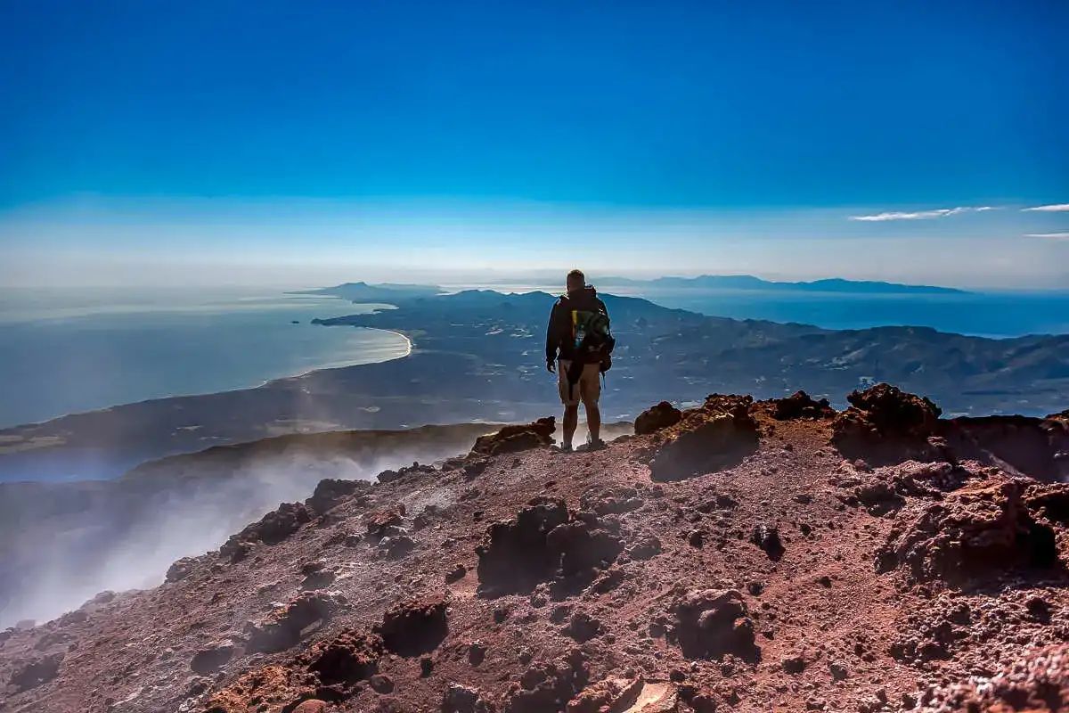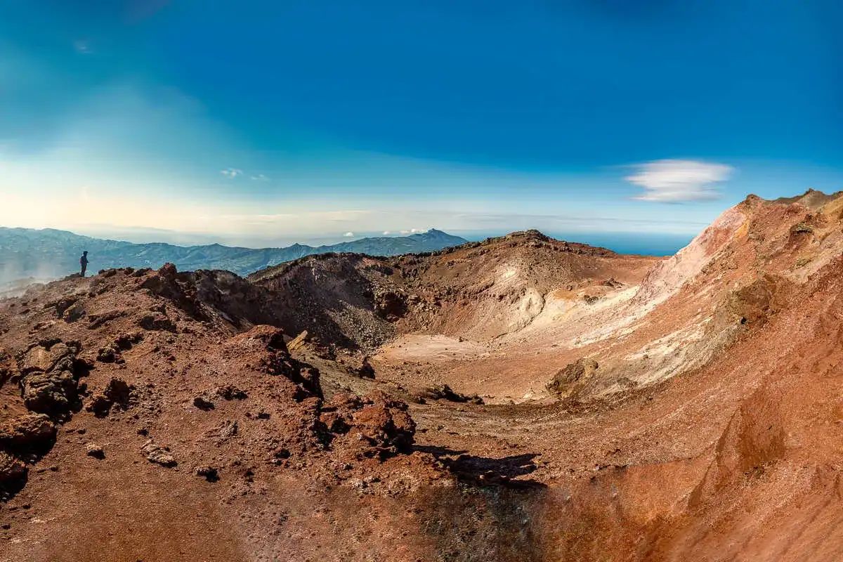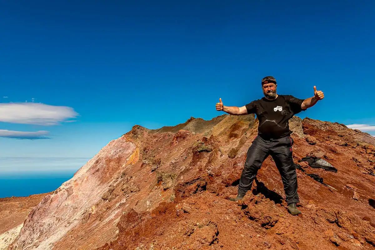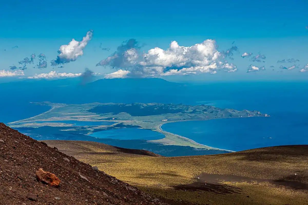 - Поднимемся на вершину вулкана и спустимся в глубокую кальдеру (разрушенный кратер)
