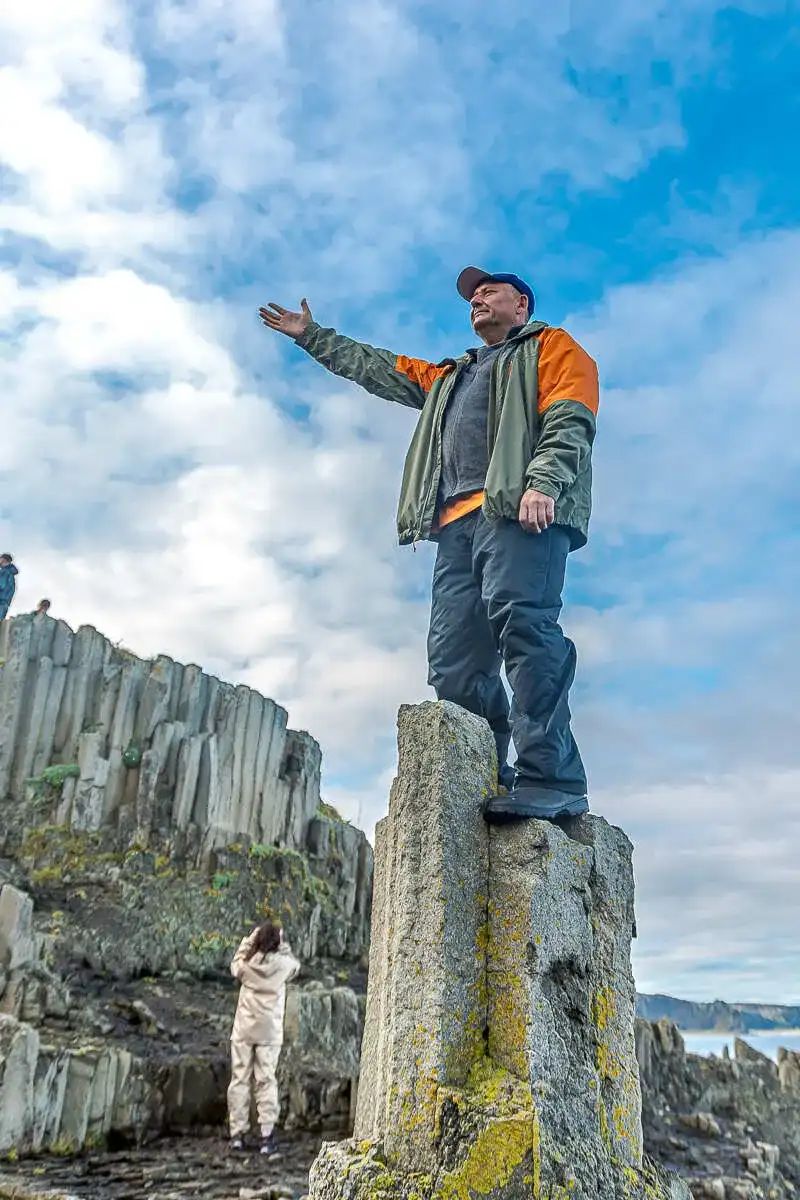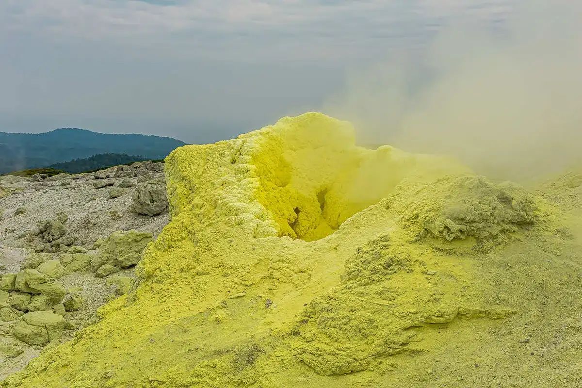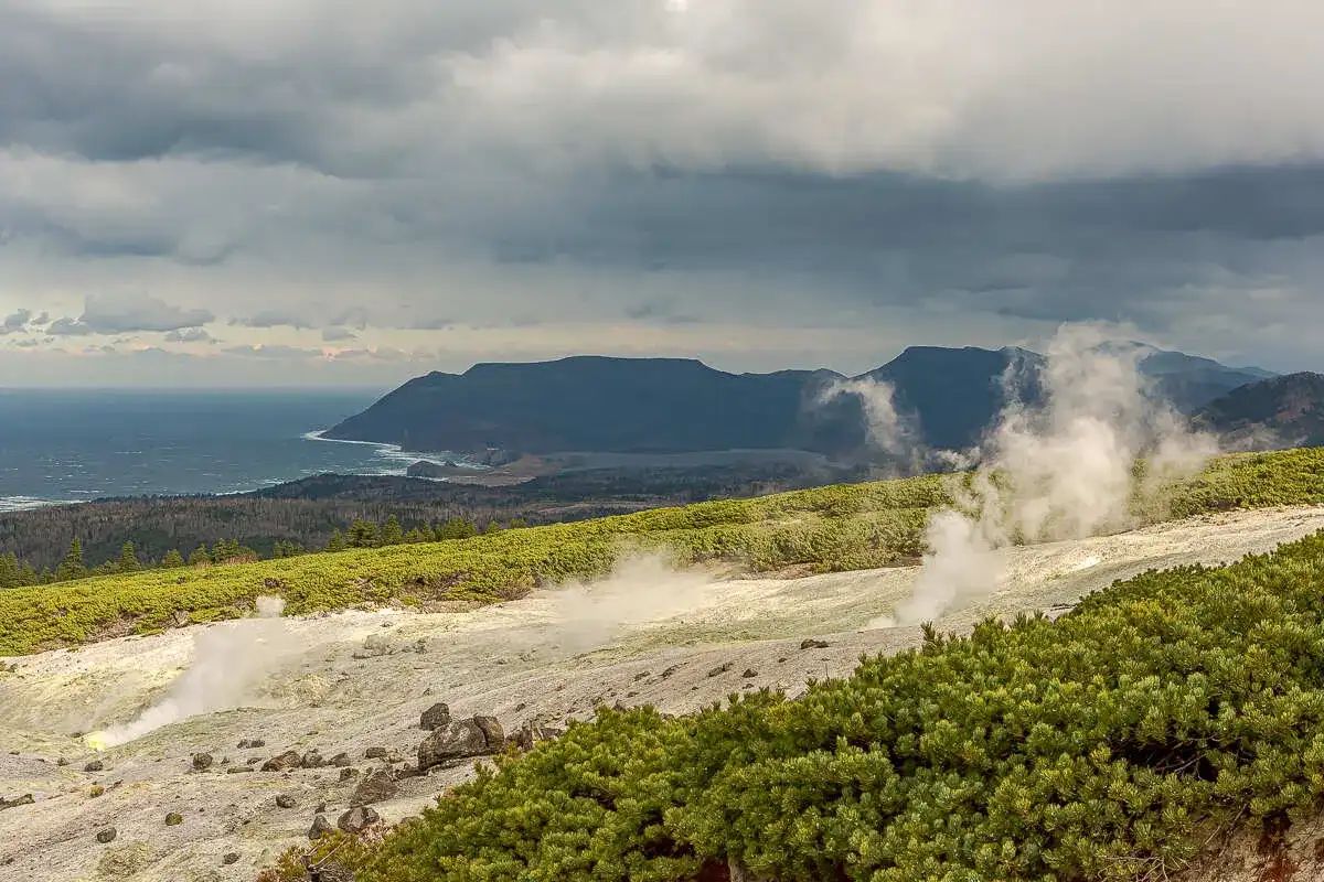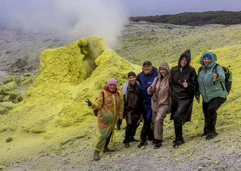 - На склоне вулкана увидим как из самой большой фумаролы на Курильских островах с громким шипением вырываются клубы газа