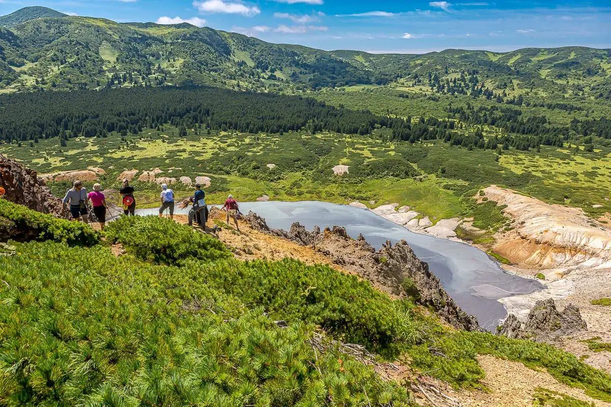 Место, которое мы посетим, представляет собой разрушенный в результате сильного взрыва кратер. При взрыве образовалась котловина диаметром около 10 км. Внутри кальдеры находятся два сильно минерализованных озера Горячее и Кипящее.