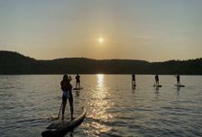 После заселения в шатры у нас будет свободное время, которое мы можем провести, плавая на SUP-досках или прогуливаясь по лесу. При желании можно отдохнуть в бане и искупаться в чане с теплой водой в окружении завораживающих видов.
