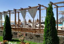 Собственный широкий песчаный пляж. 3 длинных пирса с кабинками и удобными лестницами для спуска в воду. Спасательная служба.