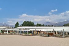 На пляже расположены несколько кафе, бары, детские и спортивные площадки, юрточный городок, волейбольное поле.