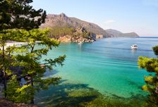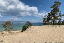 - Бухта Песчаная. Байкальская Ривьера с лазурной водой, песчаным пляжем и пирамидальными скалами