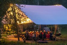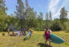 Те, кто поедет на электричке, встречаются с инструктором на вокзале в 17:00 (на майские и июньские праздники встреча утром в 07:00), остальные едут или водителями, или пассажирами до места встречи на острове Кильпола. В дороге проведём около 3 часов — можно доспать в электричке, познакомиться с товарищами по приключению или просто наслаждаться пейзажами за окном. На острове живём в палатках в уютном кемпинге. Здесь есть кухня с питьевой водой, электричество, готовые дрова и костровище, а также душ и баня, которую можно забронировать на оба вечера. Ставим лагерь, ужинаем, знакомимся и слушаем про планы на завтра от инструктора. Затем сразу спать, ведь завтра будет долгий и насыщенный впечатлениями день.