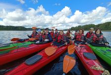 - Надежные морские каяки. Эти лодки выдержат все! Они созданы для моря и держат курс даже при сильных волнениях, когда на открытой Ладоге (вне шхер) бывает нелегко. У каждого каяка есть руль, а жесткий корпус лодки повредить будет сложно
