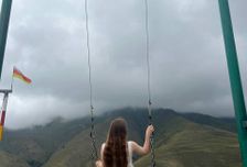 Качели над пропастью только качельки совсем не детские, они хорошо так щекочут нервы тем, кто вздумает на них покататься. А все потому, что раскачиваясь, земля уходит из под ног и в какойто момент ты зависаешь над пропастью. Но если побороть страх, то можно сделать очень красивые фотографии на фоне гор.
