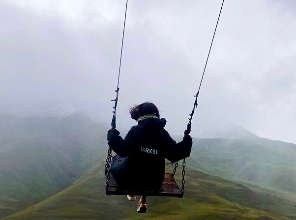 качели над пропастью - можно сделать очень красивые фотографии на фоне гор.