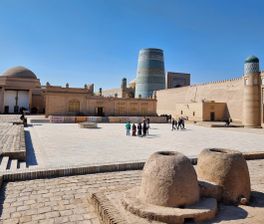 - Яркое начало: маршрут стартует в одном из самых необычных городов Узбекистана Хиве. Мы сразу погружаемся в мир атмосферных средневековых зданий из восточной сказки. Здесь внутри мощных крепостных стен целиком сохранилась древняя цитадель, каждое строение которой архитектурный памятник и отдельная достопримечательность.