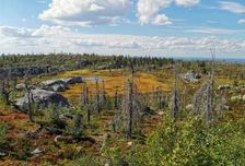 • Амфитеатр. Плоская вершина горы Воттоваара кратером уходит в болото, а по краям возвышаются загадочные сейды и причудливые деревья.
