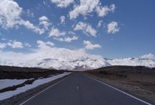 Фотолокация на асфальте с видом на Эльбрус.