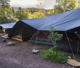 Этот маршрут для начинающих продуман с оптимальном соотношением цены и комфорта восхождения. Стоимость тура ниже, чем аналогичные программы, за счет проживания в кемпинге в домиках или палатках на территории кемпинга на выбор (4 ночи) на время акклиматизации и радиальных выходов на гору Чегет и к водопадам Девичьи косы налегке.