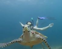 - Посноркелите в открытом море с безопасными для человека акулами и черепахами