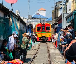До полудня прибудем в одну из соседних с Бангкоком провинций для того, чтобы увидеть рынок на действующих железнодорожных путях. В час Х услышим голосовое оповещение, гудок и далее начнётся спектакль, участниками которого, актерами, станем и мы с вами.