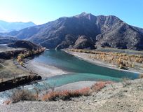 Слияние рек Чуи и Катуни — гипнотизирующее зрелище мощи и спокойствия.