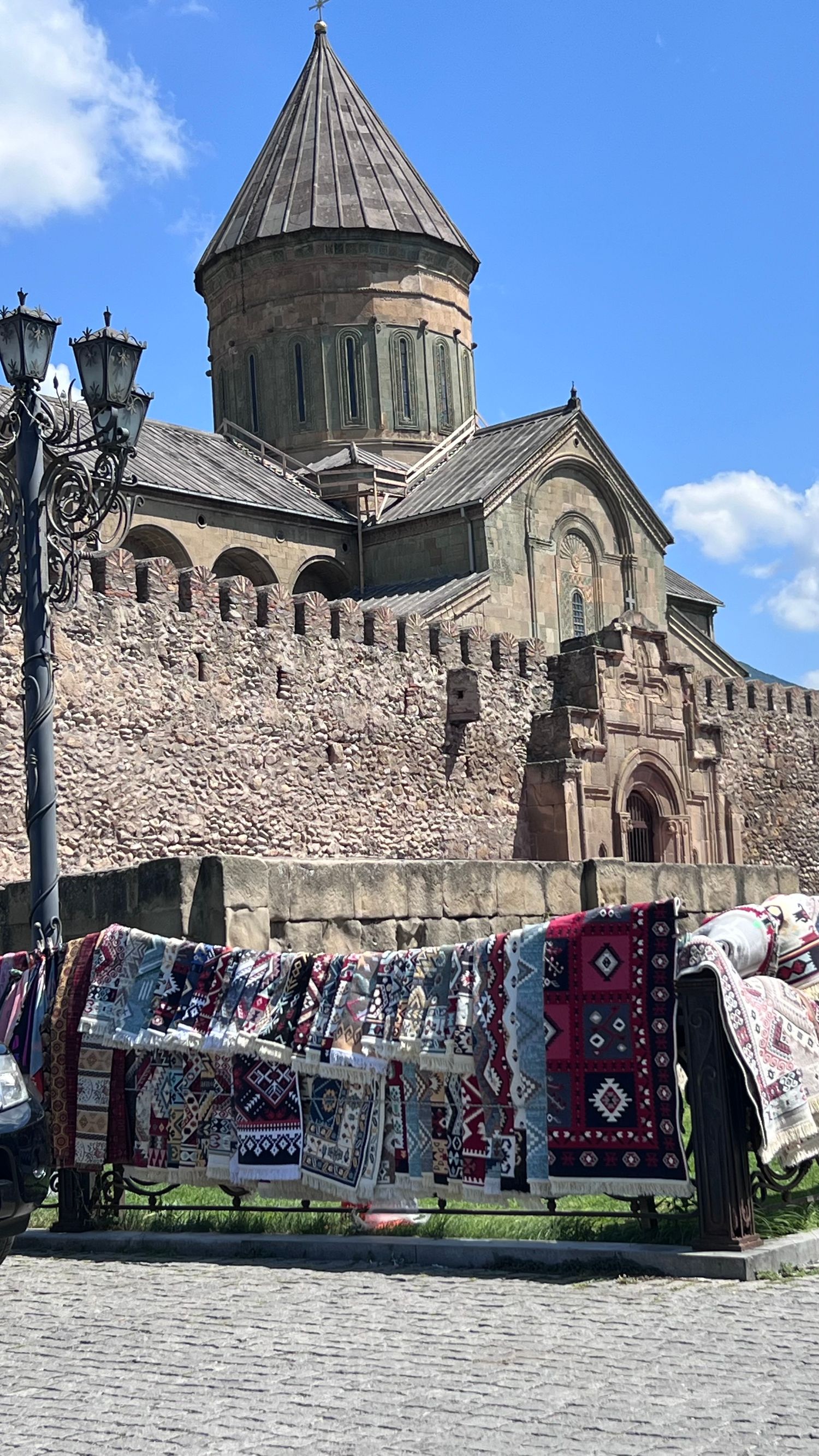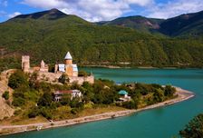 Прибытие в Телави - родину Мимино. В нынешней кахетинской столице — Телави — вы окажетесь среди пышной зелени платанов и тутовых деревьев. В центральной части - крепость Батонисцихе (королевским комплексом) и знаменитый 900-летний платан, возле которого снято несколько кадров Мимино.