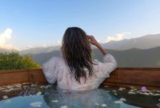 - Чан с горячей родниковой водой с видом на горы