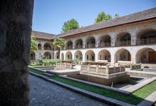 ► Далее отправимся на приветственный обед с дегустацией национальных блюд (включен). Пример обеда: чобан-салат, мангал-салат, Фисинджан-салат, рулет из баклажана, суп Мерджи (из чечевицы), долма (фарш в виноградном листе), садж из телятины, компот, вода.