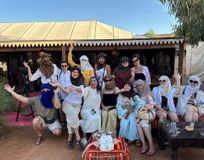 Мы возим с собой красивые восточные костюмы и металлические украшения, которые вы можете использовать для фото бесплатно. А по приезду дарим каждому участнику небольшой подарок — мягкие тапочки для комфортных переездов и дождевики на случай непогоды.