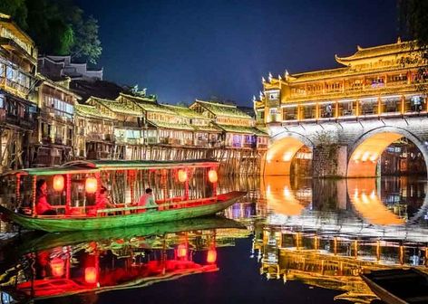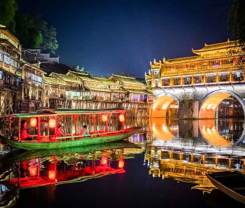 - Древний городок Фэнхуан - настоящее сокровище, сверкающее тысячами огней после заката, круиз на лодочке по реке Туо;