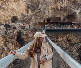 - Побываем в одном из самых интересных мест в Дагестане комплекс пещера Нохъо, где пещеры объединяются навесным мостом, размещенным на возвышенности над рекой Сулак, по обе стороны которого присутствуют смотровые площадки, откуда открываются невообразимые виды. Здесь у вас будет возможность совершить прыжок с тарзанки за дополнительную плату.