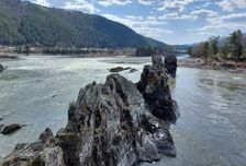 Гора Пикет. С высокой гривы посмотрим на долину Катуни. Панорама северного форпоста Алтайских гор — горы Бабырган. Любуемся красавицей Катунью и разноцветиями первых весенних цветов, которые в начале мая на Алтае покрывают склоны гор. Выход на Айский мост, с которого открывается панорама могущественной Катуни и Короны Алтая, а рядом с ним можно встретиться с первым маральником. Остановка в селе Манжерок. Камышлинский водопад. Переход через пешеходный подвесной мост. Треккинг по живописной тропинке вверх по течению Катуни (по дороге наблюдается скопление маральника). Обратно можно вернуться на моторафте (доп. плата 500 руб.), а можно прогуляться по тропинке среди многовековых сосен.