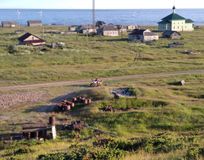 Здесь царит безлюдье, абсолютная оторванность от цивилизации и уединение. Приезжаем в деревню Тетрино, маленькая поморская деревня, как и все остальные — связь с ней лишь вертолетом. Здесь мы погуляем, заберемся на высокую гору.
