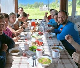 Кормим гостей в уютной столовой, в меню разные блюда камчатской кухни, на первое - уха. Также мы предлагаем в качестве приветственного напитка гостям нашу фирменную домашнюю алкогольную настойку из ягод.