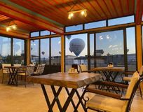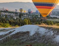 - рассвет среди сотни воздушных шаров в окружении скал