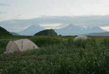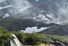 Вечером установим лагерь у подножия вулкана Горелый на берегу горного ручья. В этом лагере будем стоять две ночи.