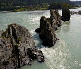Скалы Зубы Дракона — удивительная природная достопримечательность Алтайского края. Горная гряда расположена прямо в середине течения реки Катунь в 9 км от Чемала и ежегодно привлекает гостей региона, желающих увидеть настоящее чудо природы. Скалы имеют необычное строение и создают ощущение, что в давние времена они были воздвигнуты не без участия человека.