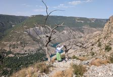 На другой день катались на сапах на водохранилище, переплыли его и на другой стороне ныряли с прекрасным видом на горы, очень красивая панорама из маленькой бухточки. И смотрели на Гуниб и пили кофе, наслаждаясь теплым закатом