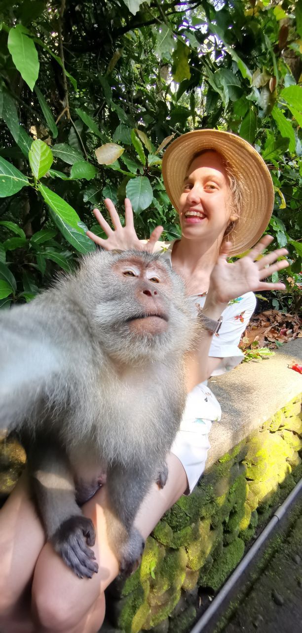 В Рождество нас ждала перемена настроения — уютная вилла среди рисовых террас Убуда, где царит душа Бали. Перед заселением мы посетили Лес обезьян. Здесь древняя тропическая природа буквально дышит легендами, а обезьяны встречают с озорством и любопытством.