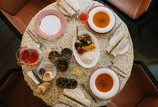 Сбалансированная вегетарианская еда: завтрак, обед, ужин, вечерний чай и тёплые посиделки в уютном ресторане с камином (будет вкусно и сытно, но без мяса, чтобы организм эффективно очищал энергетические центры).