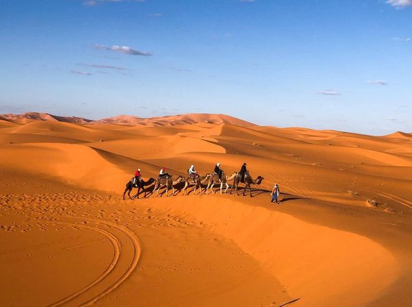 Upon arrival in Merzouga, you will have time to store your luggage at your hotel before beginning your camel trekking experience. Enjoy a 45-minute camel ride across the dunes while admiring the magical Sahara sunset.