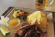 Вечером вас ждет фееричный ужин : кенийская кухня с мясными блюдами из африканских животных, перуанские коктейли, этническая музыка.