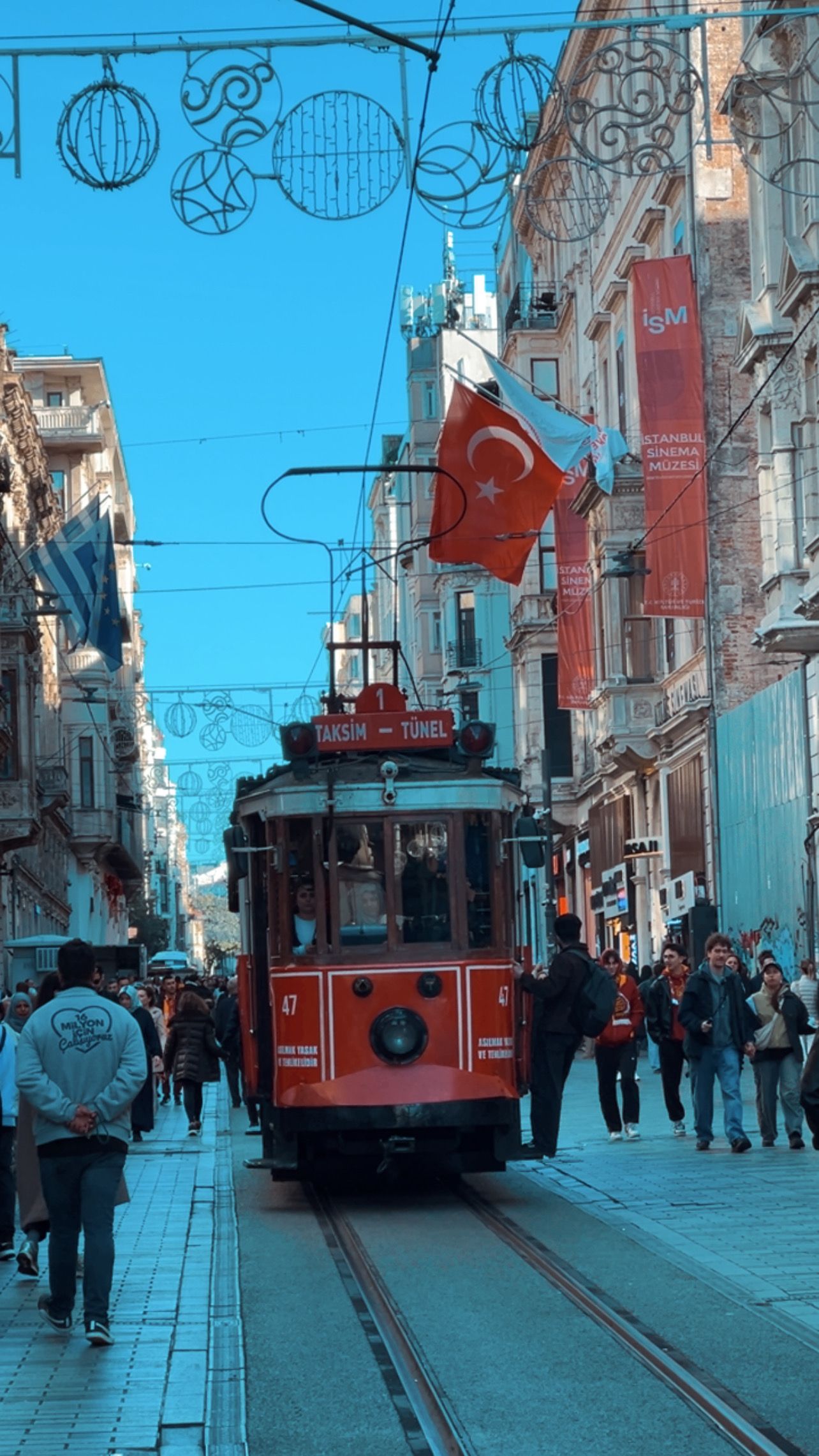 Вечером гуляем по самой популярной туристической улице города - Истикляль, которая всемирно известная и самая шумная пешеходная улица в Стамбуле, которую ежедневно посещают более 3 000 000 человек! Сама площадь Taksim Meydani (Таксим) — популярное и густонаселённое место в Стамбуле. Здесь проходят массовые гулянья и празднования, именно через Таксим пролегают все туристические маршруты.