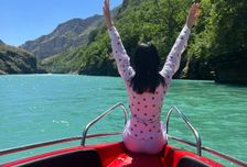 Катаемся на катере в Зубутлинском каньоне.