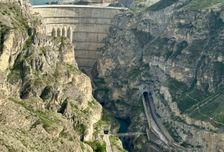 Следующая локация - Чиркейская Гэс. Выходим на тропу, которая приводит к панораме на плотину. Эту тропу мало кто знает, а вид на плотину оттуда очень интересный, видно почти всю плотину и пороги реки Сулак. В отличие от известной смотровой, откуда плотину можно увидеть только сбоку.