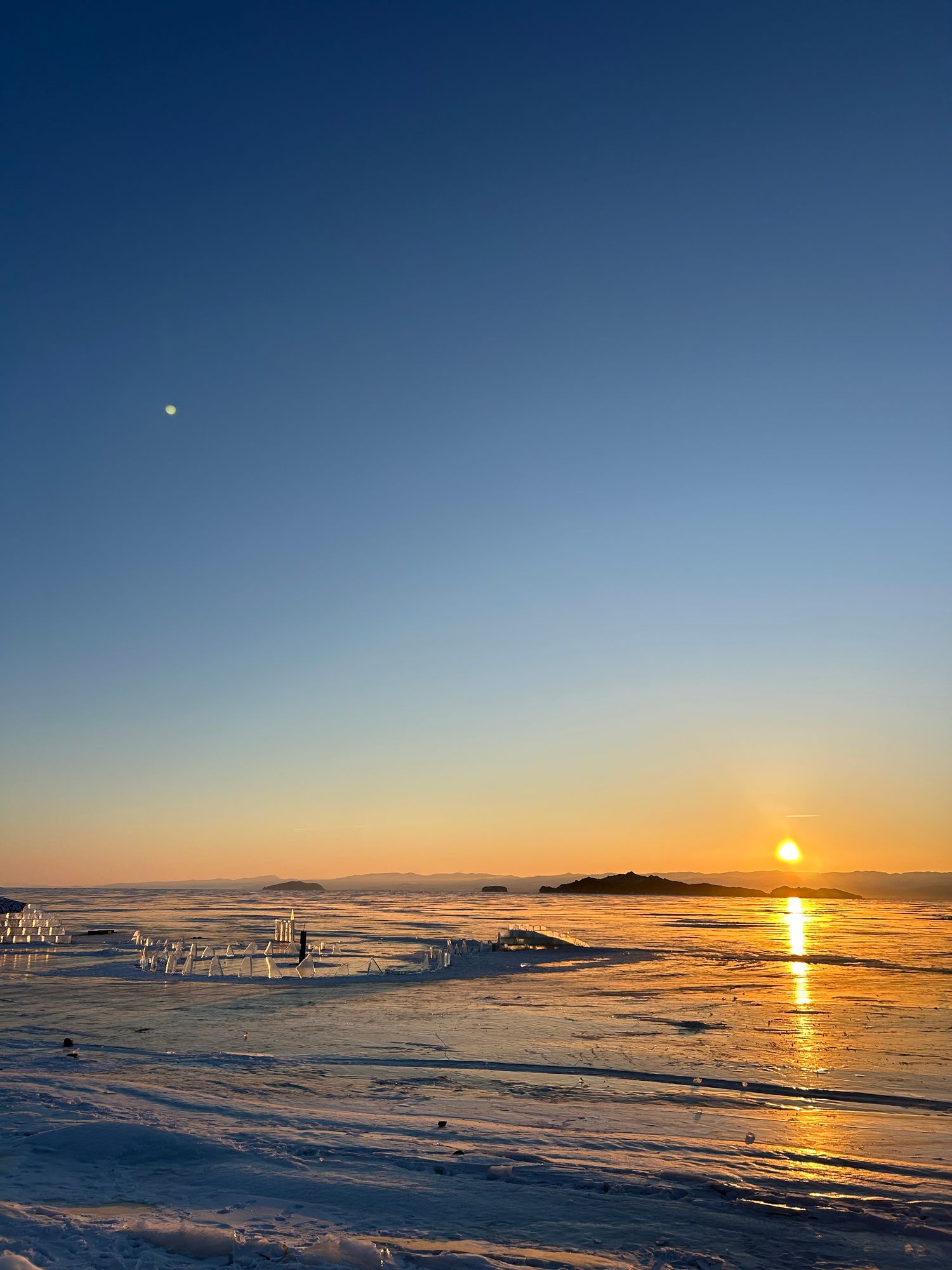 Вечером — прогулка по льду , ледяные фигуры и можно покататься с собачками, сделаем красивые фотографии и потом уютный ужин на рыбном рынке Листвянки. Завершаем день в расслабленной тишине у воды.
