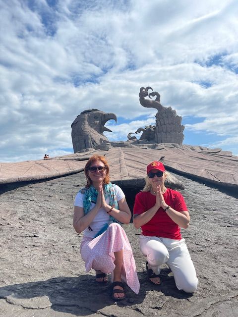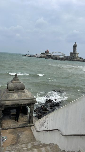 - В самой южной точке Индии, Каньякумари, встречаются воды Бенгальского залива, Индийского океана, Аравийского моря. Каньякумари знаменита тем, что с нее открывается вид на превосходный закат и рассвет; на ней находится мемориал Вивеканда, статуя Тхируваллувара индуистского святого, который в 1892 году несколько дней медитировал на острове. . Еще в те времена этот остров считался священным - здесь оставила отпечаток своей ступни богиня.Если искупаться в этих водах - получишь освобождение от всех грехов. Если долго смотреть вдаль - можно представить древний континент Лемурию (или Кумари Кандам, как называют его тамилы), который давным-давно был затоплен океаном. Если дождаться темноты, можно увидеть, как сверкает бриллиантовая сережка в носу девственной богини, ждущей своего возлюбленного на берегу океана. Именно с нее и началась вся история. Однажды в царской семье родилась прекрасная дочь. Это была богиня Парвати, воплотившись на земле, чтобы защитить людей от зла.