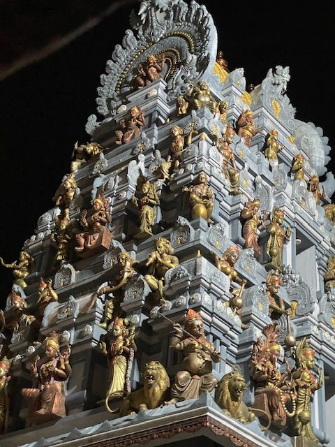 В храме находится знаменитая трехметровая статуя Ханумана - почитаемого в индуизме обезьяноподобного божества, а возле храма расположено озеро с небольшой башенкой.
