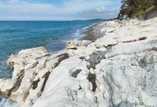 Красивое и необычное место на берегу Черного моря где на поверхность выходят скалы точно не известно какой породы. Море обточило их поверхность и сделала ее гладкой и приятной на ощупь.