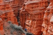 Первой остановкой станет прогулка по удивительному каньону Кок-Мойнок — настоящему природному лабиринту, созданному ветром и временем. Здесь горы окрашены в красно-жёлтые оттенки песчаника, а извилистые проходы каньона протянулись почти на 2,5 км, поражая причудливыми формами и необычными каменными строениями.