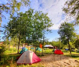 - Комфортный кемпинг. Палаточный лагерь со всеми благами цивилизации: оборудованной кухней, душем, баней, туалетом