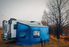 - Солнечные панели, много розеток с 220V, навес-маркиза, радиостанция, канализация.