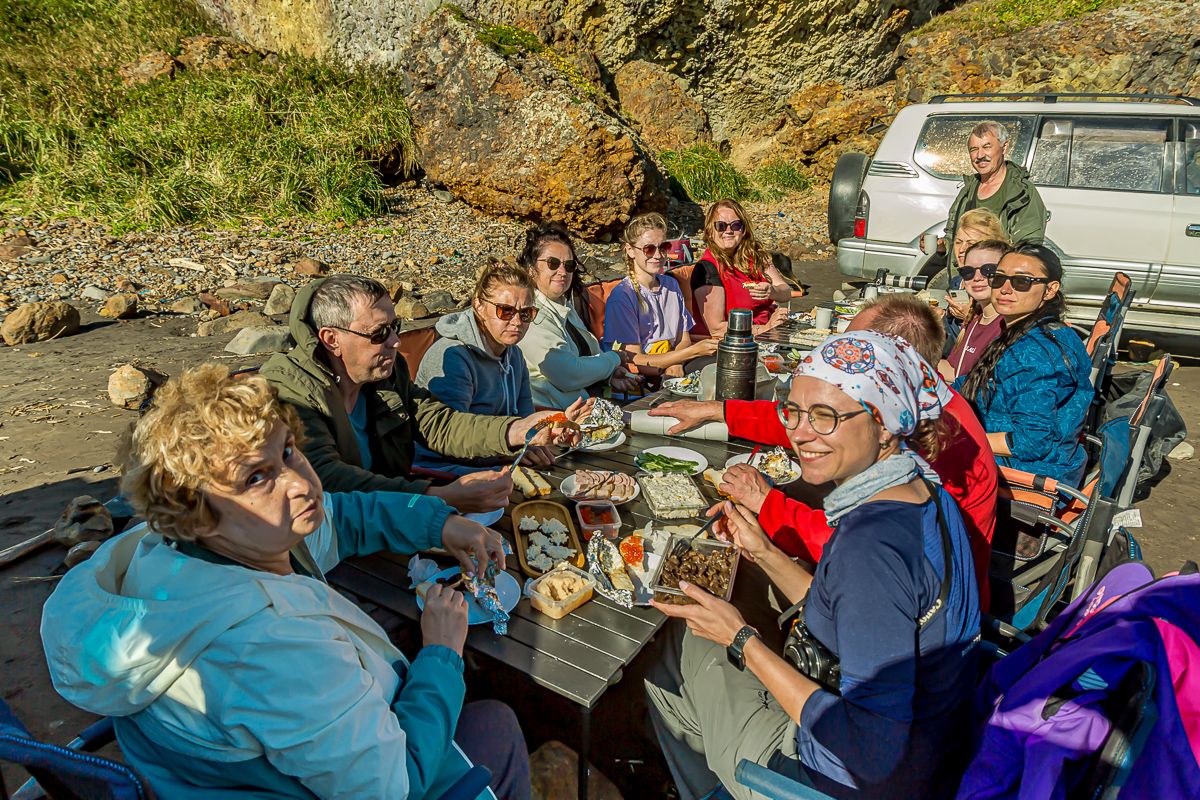 Особая гордость нашей программы это внимание к гастрономии. Мы будем пробовать знаменитую курильскую икру, свежие морепродукты, приготовленные по местным рецептам, и салаты из дикоросов. А чтобы сделать моменты отдыха совершенными, мы поднимем бокалы шампанского на фоне невероятных видов.