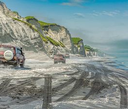 Если ваш вылет на Итуруп будет вечером, то с утра мы можем предложить вам на Сахалине дополнительную платную экскурсию на мыс Великан и мыс Птичий. Мысы известны своими красивыми видами и шикарными арками на берегу Охотского моря.